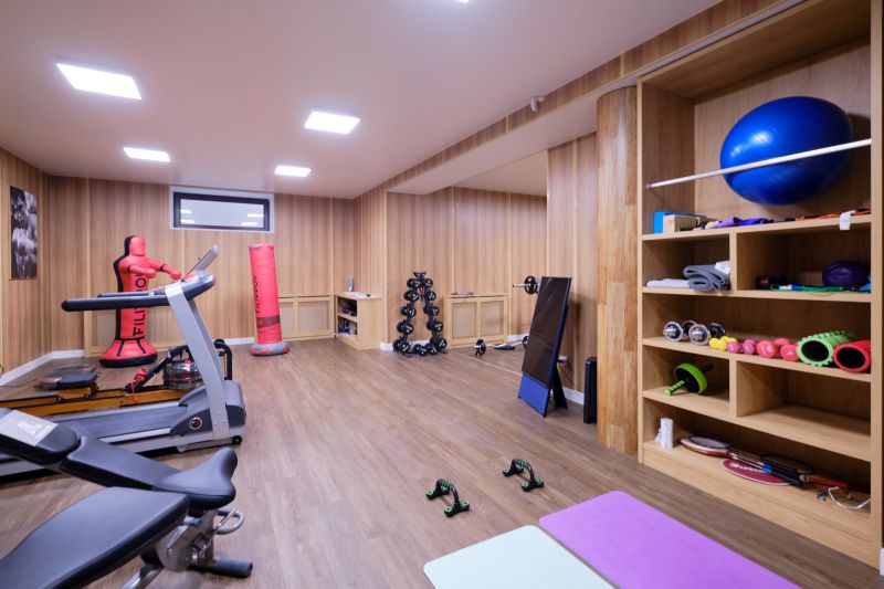 Планировка основного дома: Цокольный этаж: спортзал (оборудование LifeFitness остается), современная система водоочистки, котельная (напольный котел Buderus Logano G334), постирочная, 2 кладовых, гостевая комната.